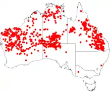 Cork tree ranges across the interior of central and northern Australia, from the southern Cape York Peninsula in the northeast, south to the Darling Downs in the southeast to northern South Australia and the Pilbara in the west.[3]