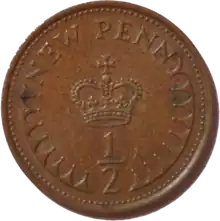 - ↑ Clayton, Tony. "Decimal Coins of the UK - Halfpenny". Retrieved 2006-05-24.