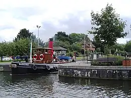 There is reference to continuing use of the flash lock and winch at the weir until the middle of the nineteenth century. The channel downstream of the lock which takes navigation clear of the weir and weir pool was excavated in 1825. The lock was completely rebuilt in 1870 after years of complaint about its condition. In 1884 the new weirs were built and after public complaints the walkway was built to reopen the ancient right of way.[2] The lock was rebuilt in 1994.