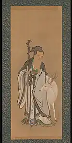 - A female Transcendent riding on a white deer, painting by Kishi Ganku, (1749-1839)