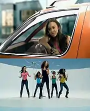 The video is set in a colorful city and has a futuristic theme to it. The storyline of the video begins with Jordan dropping off her boyfriend (portrayed by Tom Williamson) at a bus stop, as they appear to be breaking up.[27] She is seen sitting in the backseat of her orange AMC Pacer, and starts to sing the song's first verse, just as the wind begins to pick up, sliding her car and the bus stop, where her boyfriend is at, in opposite directions.[27] Throughout the video, the city moves in motion. It is intercut with other scenes, including Jordan dancing with four other back-up dancers at a swimming pool, a man reading a newspaper while holding a Dalmatian dog by its leash, and also a woman with a few shopping bags. During the car scenes, Jordan sees flashbacks of her boyfriend in the car's rear-view mirror. She later realizes that he makes her happy and moves to the driver's seat, to stop the car. Jordan then reverses the car, sending her back to the bus stop to reunite with her boyfriend. As the pair reconcile at the bus stop, the wind causes the car and the bus stop to slide off again, as the couple stare bewildered at the sight.[27]