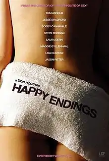 Happy Endings is a 2005 American comedy-drama film written and directed by Don Roos and starring Tom Arnold, Jesse Bradford, Bobby Cannavale, Steve Coogan, Laura Dern, Maggie Gyllenhaal, Lisa Kudrow and Jason Ritter. The film’s plot uses interconnected storylines to tell three stories of Los Angeles natives that center around love and family. This plot structure led to the coining of the term "hyperlink cinema", by Alissa Quart in her review of this film for the journal Film Comment.[2]
