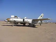 Egyptian Il-28s also took part in the North Yemen Civil War, starting in 1963. In addition to attacks on the royalist forces, they also bombed the Saudi cities of Jizan, Najran, and Khamis Mushait.[20] Two Egyptian Il-28s may have been shot down near Sanaa by Royal Saudi Air Force Hawker Hunters flown by British pilots, in 1966.[21]