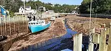 The area of Harbourville was originally granted to the Best family of New England Planters. They did not settle at Harbourville but logged the land which gained the location the name of Shingle Log Brook. The land around the brook was purchased by John Given and James Owens in 1824. They settled at the brook a few years later, built a pier and carried out logging as the area became known as Givens Wharf. The Hamilton family joined the settlement in 1829. The community became first a logging, then shipbuilding and trading centre exporting lumber and agricultural products from farms in the Berwick area of Annapolis Valley in the 1840s and 50s. On March 13, 1860 residents voted to choose the name Harbourville, reflecting the sheltered harbour created by the brook and piers. A Methodist church, which still stands as a United Church, was built in 1860 and a school house was built in the next year. The community declined in the late 19th century as timber resources were depleted and the Windsor and Annapolis Railway, later the Dominion Atlantic Railway, took over agricultural exports from the Annapolis Valley. The harbour continued to be used by inshore fishermen. Tourism became an industry in the early 20th century as a number of summer hotels operated, later replaced by summer cottages along the bay. Famous Hollywood actress Theda Bara owned a cottage in the area called "Baranook".[1] Fishing and tourism remain the principle industry. Harbourville's wharves were always managed locally and never became part of the Small Craft Harbour program of the federal government. Maintenance and operation of the wharves were taken over by the Harbourville Restoration Society in 1999. The east wharf was restored by the society in 2003 and the west wharf was restored in 2009.[2]