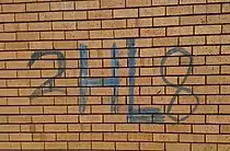 A combination of a Hard Living and 28s gang tags in Manenberg, Cape Town. The Hard Livings is a Cape Town based street gang whilst the 28s are a South African prison gang.