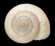| Apertual view of a shell of Harmozica ravergiensis. Width of the shell is 12 mm. | |