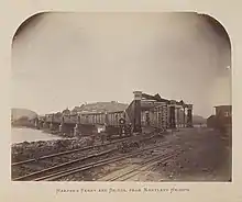 The town and the armory, except John Brown's Fort, were destroyed during the American Civil War. "The larger portion of the houses all lie in ruins and the whole place is not actually worth $10," wrote a Massachusetts soldier to his mother in 1863.[37]: 285 A visitor in 1878 found the town "antiquated, dingy, and rather squalid";[45] another, in 1879, described it as "shabby and ruined."[37]: 286 Since the Arsenal had been Harpers Ferry's largest employer but was never rebuilt, the population never recovered to pre-Civil War levels.
