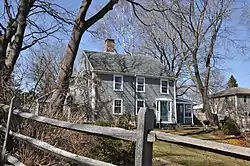 The Harris Farm is a historic late First Period farmhouse in Marblehead, Massachusetts. It is a rare example of a three-bay house from that period. It was built c. 1720 as a two-story structure with one room on each floor, and an integral leanto section in the rear. The leanto section was later raised to a full two stories and the roof was rebuilt. Further additions in the 1950s added converted 19th-century sheds to the rear of the house, and the front door was replaced with a Colonial Revival style door.[2]