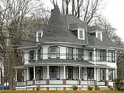 Built circa 1900, this historic structure is a two-story, five-bay, frame dwelling that was designed in the Queen Anne style. It features tall Jacobean chimneys, a wraparound porch on three sides, rounded corners, and a partial porch on the second story. Its builder also built the Isaac Pawling House across the street.[2]