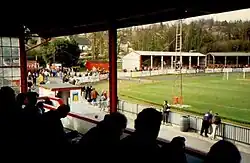 In 1985 the club moved back to the Pilot Field,[13] which since 1948 had seen the construction of two new stands behind one goal, floodlights and additional catering facilities. A new clubhouse was constructed near the main entrance in 1998 and further extended the following year, the "Cole Warren" stand was erected in 2005 at the far end of the ground and providing covered standing and seating on three sides of the ground.[35]
