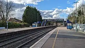 Hatton is the junction station at which the lines from Leamington Spa to Stratford-upon-Avon and Birmingham diverge. The station is unstaffed; ticketing is restricted to a 'Permit-to-Travel' machine located at the single entrance to the station on the London-bound (southbound) platform. There is a small shelter on Platform 1 (southbound - for trains from Birmingham to Leamington Spa) and also one on the island platform, which consists of Platforms 2 and 3 (Platform 2 is for Birmingham-bound services and Platform 3 is for stations from/to Stratford upon Avon, which bear to the west immediately north of the station. Trains can, however, use both Platforms 2 and 3 to reach Birmingham, as just outside the station, the lines re-join). A footbridge links Platform 1 with island Platform 2/3.