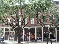 The building's earliest history is unknown. The oldest photograph dates to c. 1890, showing a "sample room", saloon, and a grocery or hardware store in the building. The second floor appears to have always been used for apartments. In the 1950s, a portion of the building held a grocery store operated by Adam Sauer. After a few years, Tony Shumick moved his own grocery into the building. In the mid-1970s, partners Fred Holdridge and Howard Burns established Hausfrau Haven, then a small market. The two stocked any items two or more customers would ask for; wine and The New York Times were especially popular. The store operated every day except January 1, when community members and customers would help them take inventory. The store was also noted for its witty signs, including those reading "Unattended children will be sold!" and "We will not be taken over by The Limited!".[1]