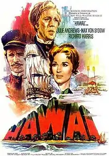 Hawaii is a 1966 American epic drama film directed by George Roy Hill. It is based on the eponymous 1959 novel by James A. Michener. It tells the story of an 1820s Yale University divinity student (Max von Sydow) who, accompanied by his new bride (Julie Andrews), becomes a Calvinist missionary in the Hawaiian Islands. It was filmed at Old Sturbridge Village, in Sturbridge, Massachusetts, and on the islands of Kauai and Oahu in Hawaii.