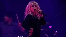 Williams was honored with the "Trailblazer Award" in the 2014 Billboard's Women in Music Awards for making a unique mark in music and paving the way for other artists.[38] In 2015, Williams starred as the 'Crimson Curse' in Taylor Swift's music video for her single, "Bad Blood", alongside sixteen other celebrities.[39] Along with band member and co-writer Taylor York, Williams was nominated for and won the Grammy Award for Best Rock Song at the 2015 ceremony for the song "Ain't It Fun".[40][41][42] In July 2015, Williams won the APMA for Best Vocalist.[43][44]