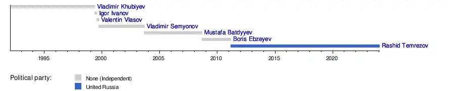 The position of the Head of the Karachay-Cherkess Republic[lower-alpha 1] (formerly known as the President of the Karachay-Cherkess Republic) is the highest office within the Government of the Karachay-Cherkess Republic in Russia. The Head is elected by citizens of Russia residing in the republic. Term of service is five years.[1]