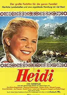 Heidi is a 1965 Austrian family film directed by Werner Jacobs and starring Eva Maria Singhammer, Michaela May and Jan Koester. It is an adaptation of Johanna Spyri's 1880 novel of the same title.[1]