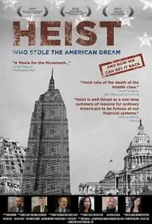 Heist: Who Stole the American Dream? is a 2011 documentary film, which argues that government deregulation led to the Great Recession. It was directed and produced by Donald Goldmacher and journalist and former CNN Senior National Assignment Editor Frances Causey. Narrated by Thom Hartmann. The documentary is partially based on Jeff Faux's 2006 book The Global Class War.[1] The film traces the roots of the Great Recession to Virginia lawyer Lewis F. Powell, Jr., whose 1971 memo to the United States Chamber of Commerce urged corporate America to become more aggressive in molding politics and law.[2]