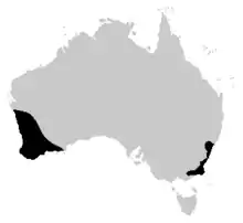 Heleioporus is a genus of frogs native to Australia. Of the six species in this genus, five live in south-west Western Australia, while the other one species only occurs in south-eastern Australia. All members of this genus are medium to large sized burrowing frogs with rounded heads, short bodies, bulging eyes, short limbs and the hands are free from webbing. The toes are relatively short with only a trace of fleshy webbing. A characteristic of this genus (except for Heleioporus eyrei and some Heleioporus psammophilus) is the black nuptial spines that male frogs have on their first and occasionally second and third fingers.[1] The pupil restrict to form a vertical slit and the tympanum is usually distinct. All the species in this genus call from burrows where the eggs are later deposited in a foam mass. Embryos develop in this mass until hatching. Hatching occurs after the burrows are flooded with water, and may be delayed until this happens. The calls of these species are similar although differ in frequency, length, note and repetition rate.