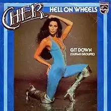 According to J. Randy Taraborrelli 's biography, "Hell on Wheels" was recorded because Cher admitted to being a roller-skating fanatic.[4] The single was released with "Git Down (Guitar Groupie)", a song from the album Take Me Home on its B-side. Both songs were released as a 12" extended version and both versions are not yet released on CD.