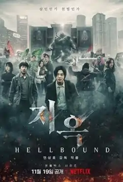 Hellbound (Korean: 지옥) is a 2021 South Korean dark fantasy streaming television series directed by Yeon Sang-ho, based on his own webtoon of the same name. An original Netflix release set in the then future year of 2022, supernatural beings suddenly appear out of nowhere to condemn people to Hell. The series stars Yoo Ah-in, Kim Hyun-joo, Park Jeong-min, Won Jin-ah and Yang Ik-june.[2][3][4][5]