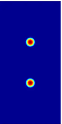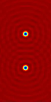 Two sources of radiation in the plane, given mathematically by a function f, which is zero in the blue region