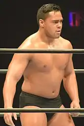 Henare signed with NJPW in early 2016 and debuted in September of that year, losing to Pro Wrestling Noah's Quiet Storm at Lion's Gate Project 3.[9] Henare's first win in NJPW came on 6 September, when he defeated fellow young lion Hirai Kawato.[10] He appeared on his first major NJPW show, Destruction in Tokyo on 17 September, teaming with David Finlay in a losing effort against Roppongi Vice.[11] On 12 November, Henare returned to his home city of Auckland, New Zealand, defeating Hikule'o at a Bad Luck Fale produced show.[12] Henare entered the 2016 World Tag League alongside veteran Manabu Nakanishi. The two finished last in their block with zero wins and zero points. On 21 February 2017, in a match with Tomoyuki Oka, Henare suffered an Achilles tendon injury and the match had to be stopped. He was taken out on a stretcher. Henare returned in November for the 2017 World Tag League, where he teamed with Togi Makabe.[13] The two finished the tournament with a record of one win and six losses.[14]