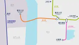 The Hengqin extension line (Chinese: 延伸橫琴線, Portuguese: Linha de Extensão da Ilha de Hengqin) is a line of the Macau Light Rapid Transit currently under construction, planned to open in 2025. The line will operate as a shuttle between the existing Lotus Checkpoint station on the Taipa line and Hengqin Checkpoint station on the island of Hengqin. The line will be 2.2km long, and 900m will be underground,[1] including Hengqin Checkpoint station.[2]