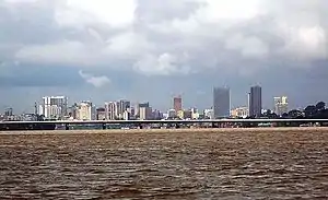 Henri Konan Bédié Bridge, also known as the HKB Bridge or Third Bridge, is a road bridge and expressway linking the north and south of Abidjan. The 1.5 km (0.93 mi) viaduct crosses the Ébrié Lagoon connecting the districts of Cocody and Marcory.