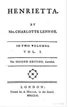 Henrietta is an 18th-century novel by Scottish author Charlotte Lennox. The first edition was published in 1758, and the second edition, revised by Lennox was published in 1761.[1]