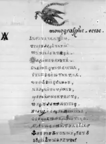 Among his manuscripts, one stands out as it is an encrypted poem. Every pair of lines ends with a same symbol (which is expected in a simple poem), suggesting a substitution cipher with polygraphic elements. Debosnys claimed that his cipher was widely used in Europe, and some resemblances have been noted between his writings and masonic ciphers, such as the Copiale cipher and the Folger Manuscript. On the reverse side of the paper containing the poem, a Greek translation is provided. However, the original language of the ciphertext is uncertain, as it could be English, French, Latin, Spanish, or Portuguese, all of which Debosnys was fluent in.[5]