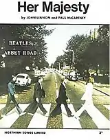 "Her Majesty" is a song by the English rock band the Beatles, from their 1969 album Abbey Road. Written by Paul McCartney and credited to Lennon–McCartney, it is a brief tongue-in-cheek music hall song.[1] McCartney is the only musician to appear on the track. "Her Majesty" is the final cut on the album and appears 14 seconds after the previous song "The End", but was not listed on the original sleeve. Some observers consider it the first example of a hidden track.[3][4]