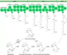 - ↑ Pokhrel, Anaya Raj; Dhakal, Dipesh; Jha, Amit Kumar; Sohng, Jae Kyung (October 2015). "Herboxidiene biosynthesis, production, and structural modifications: prospect for hybrids with related polyketide". Applied Microbiology and Biotechnology. 99 (20): 8351–8362. doi:10.1007/s00253-015-6860-2. ISSN 0175-7598.