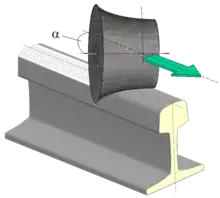 HSG is based on the principle of circumferential grinding. Cylindrical grinding stones are pulled over the rail at an angle, inducing rotation as well as an axial grinding motion. The grinding stones are mounted on grinding units hauled by a carrier vehicle.