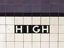- ↑ Cox, Jeremiah (May 16, 2008). "Looking at the purple trimline with a black boarder and black High text beneath it along the platform walls at High St". subwaynut.com. Archived from the original on March 16, 2016. Retrieved December 16, 2016.