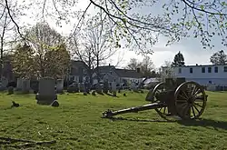 Although the cemetery was at laid out in a fairly rural area, it developed in the first half of the 19th century to become the town center, and the cemetery was soon hemmed in by development on all sides. In 1870 the town voted to acquire the cemetery, and closed it to further use except to those who (according to the 1805) had customarily used it. The last new burial took place in 1875; several graves (particularly some of those of Revolutionary War veterans) were relocated here from other burial grounds in 1929.[2]