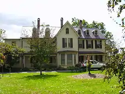 The Highland Lodge, also known as Pequea, is a historic home and resort building complex located at Frederick, Frederick County, Maryland, United States. It consists of a large Victorian period frame house centered at the end of a circular driveway, and its complement of outbuildings. The house is large and rambling and considered eclectic in style with a prominent central projecting gable. The property includes a frame stable and carriage house, now garages; a small frame barn; a small log dwelling moved to the property in the early 20th century; a frame summer kitchen and a frame secondary dwelling. It was developed originally in 1881 as a summer home for John H. Williams, a wealthy and influential Frederick attorney and banker.[2]