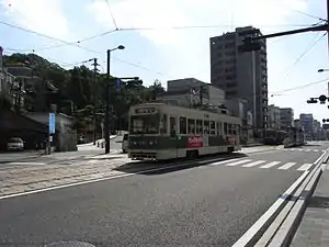 Hijiyama-shita is a Hiroden station (tram stop) on Hiroden Hijiyama Line, located at the foot of Mt. Hijiyama, in Hijiyama-cho, Minami-ku, Hiroshima.