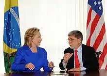 Secretary Clinton met with Celso Amorim, Foreign Minister of Brazil, in March 2010 at the Palácio do Itamaraty in Brasília