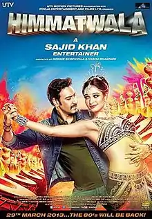 Himmatwala (transl. The brave one) is a 2013 Indian Hindi-language action comedy film written and directed by Sajid Khan and jointly produced by UTV Motion Pictures and Vashu Bhagnani. The film features Ajay Devgn and Tamannaah Bhatia in the lead roles. Set in 1983, it is an official remake of the 1983 film of the same name by K. Raghavendra Rao, which was, in turn, a remake of the 1981 Telugu film Ooruki Monagadu. The film was released on 29 March 2013.[3][4] The film marks Tamannaah's comeback to Bollywood after she debuted in the 2005 film Chand Sa Roshan Chehra.