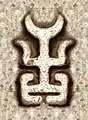 Late Hunnic coin of the Peroz type, with tamgha in front of the ruler.[9][28]