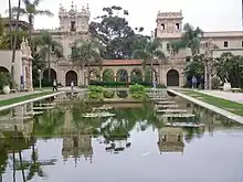 Spanish Colonial Revival architecture, prevalent in the early 20th century, draws influence from the Spanish colonization period. Buildings designed in this style feature elements such as white stucco walls, wrought iron details, courtyards, and tilework. Balboa Park, home to numerous Spanish Colonial Revival buildings, including the iconic California Building and the San Diego Museum of Us, showcases the grandeur of this architectural style.[16]
