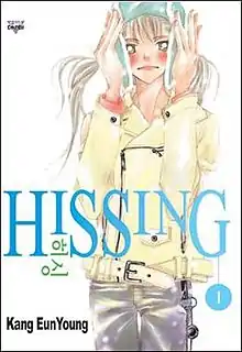 Hissing (히싱 Hi-sing) is a Korean manhwa series written and illustrated by Kang Eun-young. Originally serialized in the magazine Wink, Hissing was later released in 6 volumes between January 2004 and August 2005 by Seoul Cultural Publishers, Inc. ICEkunion licensed the series for an English release and published 3 volumes, but was absorbed into the Hachette Book Group USA's graphic novel imprint Yen Press. Yen Press continued to release Hissing, and the final volume was made available in March 2009. Western critics gave the series mixed reviews, with its art and storytelling both criticized and applauded.