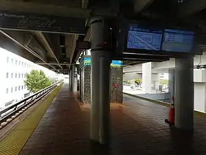 Historic Overtown / Lyric Theatre station is a station on the Metrorail rapid transit system in northwest Downtown, Miami, Florida. The station is located at the intersection of Northwest Sixth Street and First Avenue, just south of the neighborhood of Overtown and east of the historic Lyric Theatre. It opened on May 20, 1984.[1] Originally called Overtown, the Arena was added to the name in 1988 when the Miami Arena opened. It took on its current name in 2007, one year before the Miami Arena was demolished. This station is within walking distance to MiamiCentral, which serves Tri-Rail and Brightline.