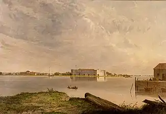 As realization dawned that more housing would be needed for the increasing number of POWs captured by Union troops, officials at the fort embarked on a construction program in 1862, building barracks for enlisted soldiers which came to be known as the "bull pen."[10] A 600-bed hospital was also built, as were barracks for the Union soldiers who would be brought in to guard the increasing POW ranks.