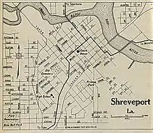 Shreve Town was originally contained within the boundaries of a section of land sold to the company by the indigenous Caddo Indians in the year of 1835, during the period of Indian Removal.[1] In 1838, Caddo Parish was created from the large Natchitoches Parish and Shreve Town was designated as the parish seat. Shreveport remains the parish seat of Caddo Parish today. On March 20, 1839, the town was incorporated as "Shreveport".[1]