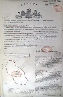- 1 2 "File:Smooth Island (Tasmania)- Quested mortgage information.JPG". 16 September 2017. Archived from the original on 18 July 2021. Retrieved 18 March 2018 – via Wikipedia.
