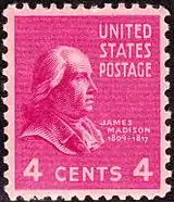 - ↑ "James Madison Issue", Arago: people, postage & the post, National Postal Museum online, viewed April 20, 2014. An image of the stamp can be seen at Arago, James Madison stamp.