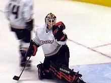 Philadelphia-arena management specialist Tony Tavares was chosen to be team president,[2] and Jack Ferreira, who previously helped create the San Jose Sharks, became the Ducks' general manager.[5] The Ducks selected Ron Wilson to be their first head coach in team history.[6] The Ducks and the expansion Florida Panthers team filled out their rosters in the 1993 NHL Expansion Draft and the 1993 NHL Entry Draft. In the former, a focus on defense led to goaltenders Guy Hebert and Glenn Healy being the first picks, followed by Alexei Kasatonov and Steven King.[7] In the latter, the Ducks selected Paul Kariya as the fourth overall pick, who began play in only 1994 and became the face of the franchise for many years.[8] The resulting roster had the lowest payroll of the NHL at only $7.9 million.[9]