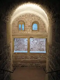 On 3 May 1096, Count Emicho of Leiningen stopped in Speyer on his way to the crusade and, together with burghers of Speyer and peasants from nearby, attacked the Jews and the synagogue.[11] In a report on the pogroms of 1096 in Speyer and Worms, written 1097–1140 by the so-called Mainz Anonymous, it says: "And it happened on the 8. day in the month of Iyar (6 May 1096), on a Sabbath, the last judgement started to come upon us as the mistaken and city dwellers rose in Speyer against the holy men, the pious of the Almighty; they conspired against them to seize them together in the synagogue. This came to their attention, so they rose early in the morning, even on Sabbath, prayed briefly and left the synagogue. And when they (the enemy) noticed that their plan to seize them together couldn't be followed, they rose against them and killed eleven souls among them….And it happened when Bishop John heard of this, he came with many troops and wholeheartedly stood by the community, he took them into his private quarters and saved them from their hands"[12] The bishop had the rioters punished severely and the Jews stayed in the bishop's palace on the northern side of the cathedral and in other nearby towns until the rage of the mob had subsided. Taking this action, which the Jews paid him for, the bishop of Speyer (Johann vom Kraichgau I, 1090–1104) prevented massacres and expulsions as happened in other cities of the Rhineland, thus saving himself and the town a valuable source of revenues. 800 Jews perished in the pogroms of Worms and even 1000 in Mainz.[13] The events in Speyer are also mentioned in Solomon Bar Simson's chronicle on the Pogroms of 1096 which he wrote around 1140.[12]