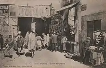The Jews of Tunisia felt much safer under the French protectorate. Contact with the French colonizers of Tunisia and the official presence of the French facilitated the assimilation of the Jews of Tunisia to French culture and their emancipation. Relying on the French revolutionary promise of Liberté, égalité, fraternité, the Jews hoped for a better life and were very receptive to the new French influences, though they had a Christian European source. For the generation born under the protectorate, the French language replaced Judeo-Arabic as the mother tongue of the Jews of French Tunisia.[18] Additionally, more Jewish children began attending state schools throughout the country, which slowly lead to the diffusion of French culture and lifestyle within the Jewish community.[19]